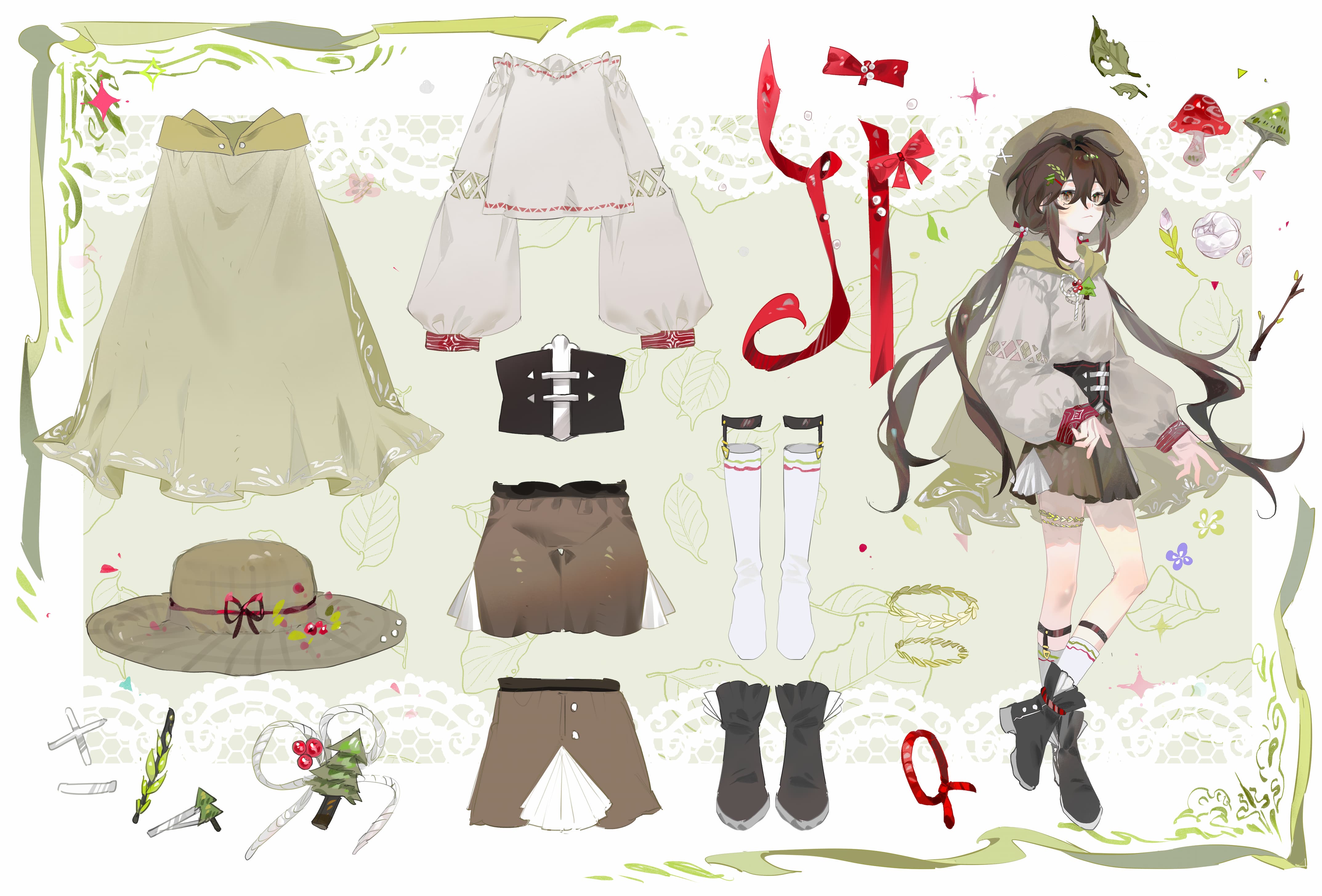 外形保留的只有裙子和树叶元素了.